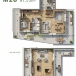 Stan mieszkania: Mieszkanie w stanie deweloperskim. Poziom podstawowy (58,91 m²) obejmuje przestronny salon z aneksem kuchennym 29,40 m², sypialnię 8,09 m², gabinet 8,15 m², łazienkę 4,54 m², dodatkowe WC 1,68 m² oraz przedpokój 7,05 m². Antresola o powierzchni 32,62 m² stanowi dodatkową, elastyczną przestrzeń, idealną jako sypialnia, strefa relaksu lub część rekreacyjna.