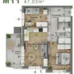 3 pokoje (pomieszczenia) 47.03 m2 1 piętro