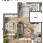 2 pokoje (pomieszczenia) 42.56 m2 2 piętro