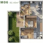 Stan mieszkania: Mieszkanie w stanie deweloperskim z wygodnym podziałem przestrzeni. Jasny salon z aneksem kuchennym 20,58 m2 zapewnia wygodną strefę dzienną i prowadzi na prywatny ogródek. W części prywatnej znajdują się dwie sypialnie: 12,38 m2 i 11,98 m2. Mieszkanie posiada również dwie łazienki (2,72 m2 i 4,37 m2) oraz przestronny przedpokój 10,37 m2.