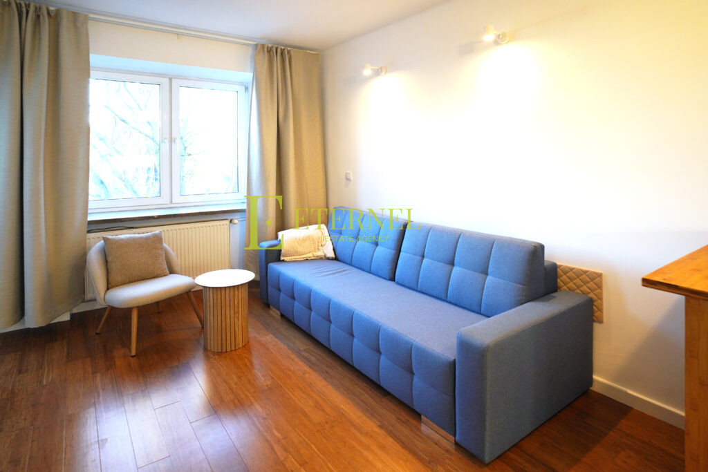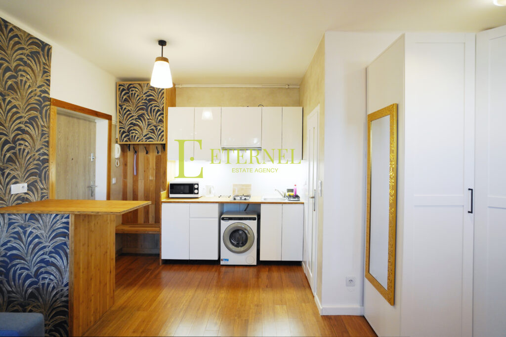 Stan mieszkania: Mieszkanie w bardzo dobrym stanie, w pełni umeblowane i wyposażone. Aneks kuchenny ze sporą ilością szafek, lodówką, pralką, kuchenką mikrofalową, czajnikiem i płytą gazową 2-palnikową. W pokoju duża szafa, odkurzacz, suszarka do prania, stolik, fotel i kanapa. Łazienka z kabiną prysznicową, umywalką i ubikacją. Ciepła woda z piecyka gazowego. Widok z okna na podwórko i zieleń.